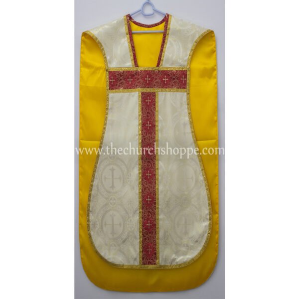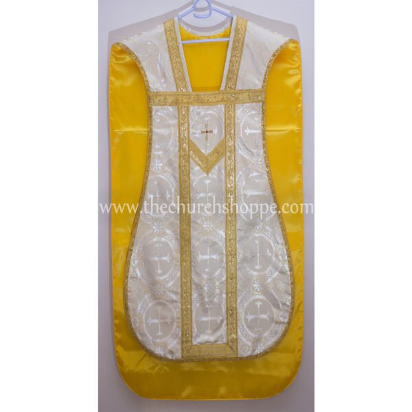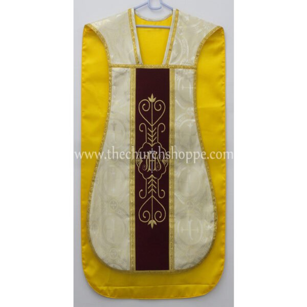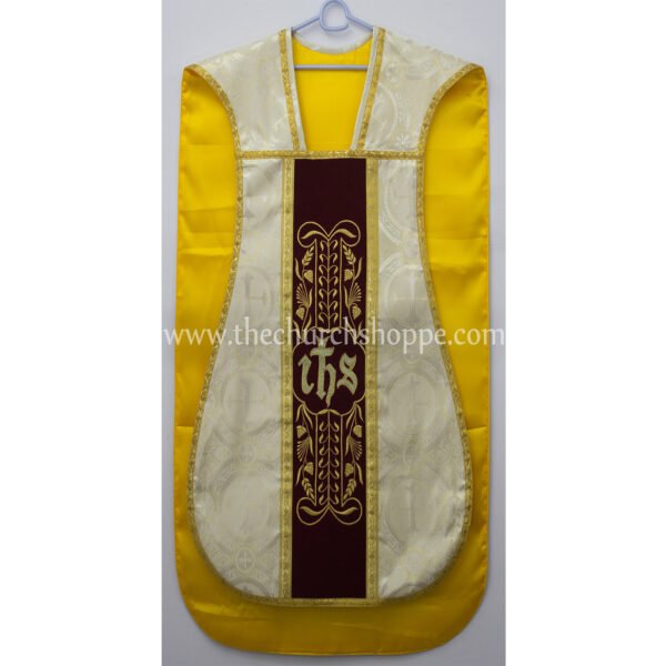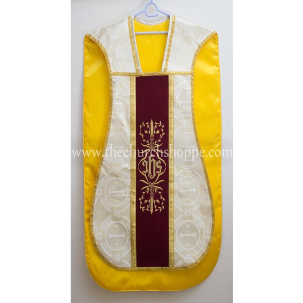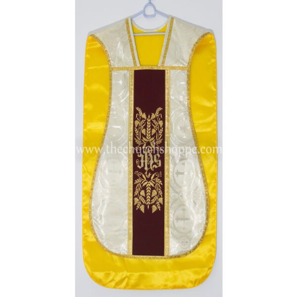 $129.99 – $139.99Price range: $129.99 through $139.99METALLIC GOLD ROMAN FIDDLEBACK CHASUBLE AND MASS SET WITH IHS EMBROIDERY