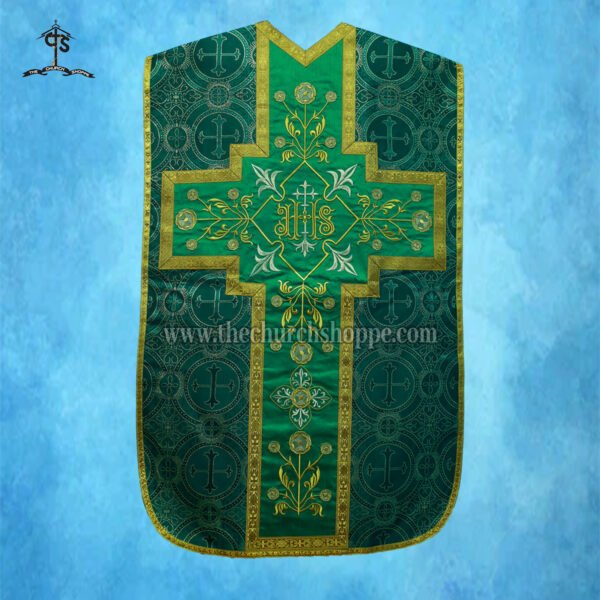 $129.99 – $149.99Price range: $129.99 through $149.99METALLIC GREEN ROMAN FIDDLEBACK CHASUBLE AND MASS SET WITH IHS EMBROIDERY