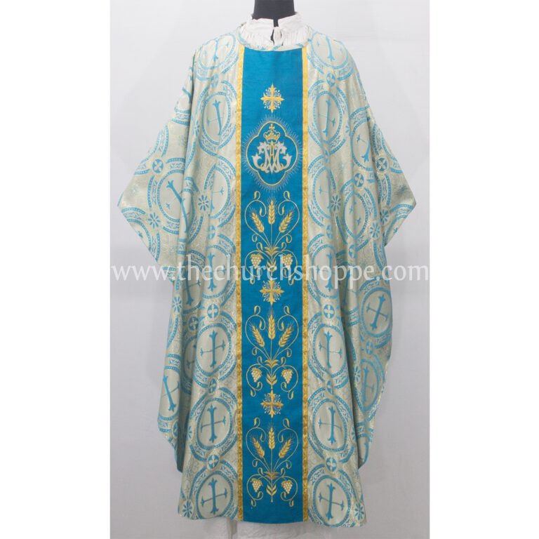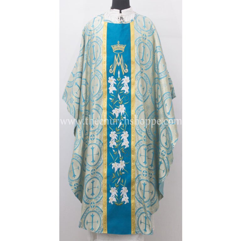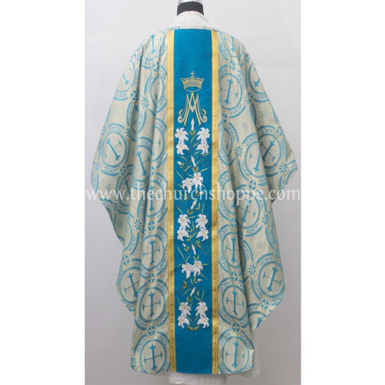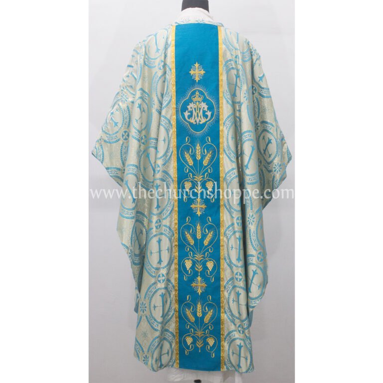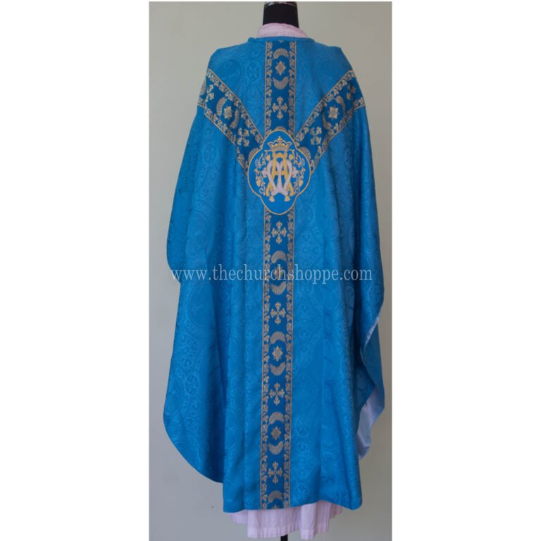 MARIAN BLUE METALLIC GOTHIC VESTMENT WITH AM EMBROIDERY