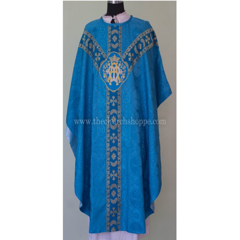 MARIAN BLUE GOTHIC VESTMENT WITH AM EMBROIDERY
